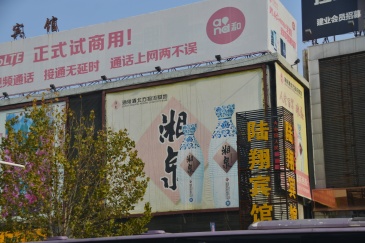 自由街与人民路交汇处东北角蓝天宾馆墙面大牌[已拆除]